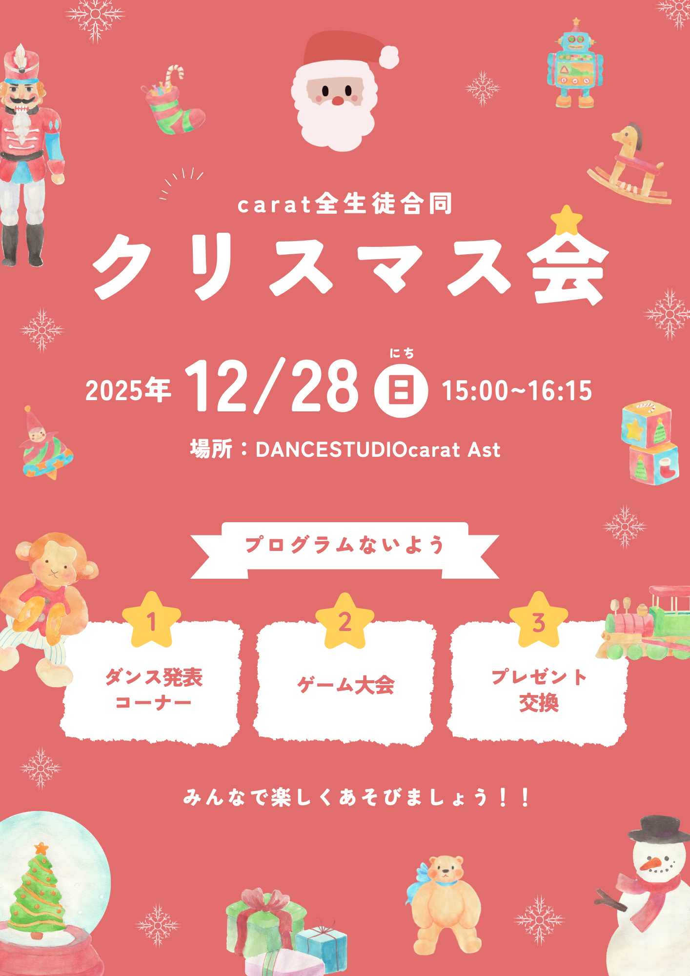 12月に各クラスでやった振りをみんなで踊ったり、その他ダンスを披露予定です。